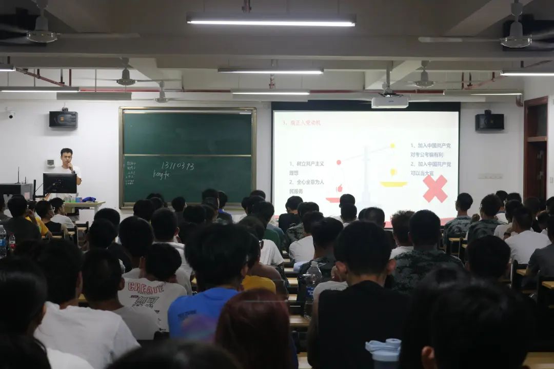 9月7日晚,为进一步引导和帮助广大新生了解党的基本知识、理论和入党程序,端正入党动机,增强党在青年学生中的吸引力和凝聚力,我院在13栋教学楼开展新生入党启蒙教育,全体22级新生到场听讲,各学生支部党员代表担任主讲。