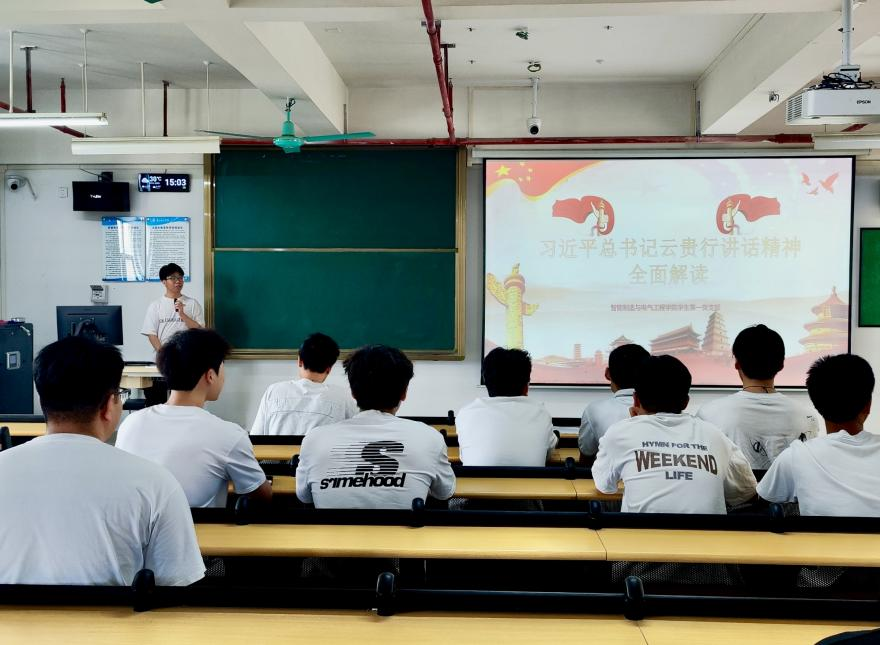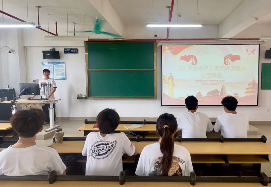 5月8日下午,73882必赢网页版三个学生党支部于 13 栋教学楼 405、406、407 教室召开专题学习会,学习贯彻落实习近平总书记在贵州、云南考察时的重要讲话精神。此次学习会由第一党支部副书记何肇哲、第二党支部副书记杨智皓、第三党支部副书记刘梓涵领学,全体学生党员参会。