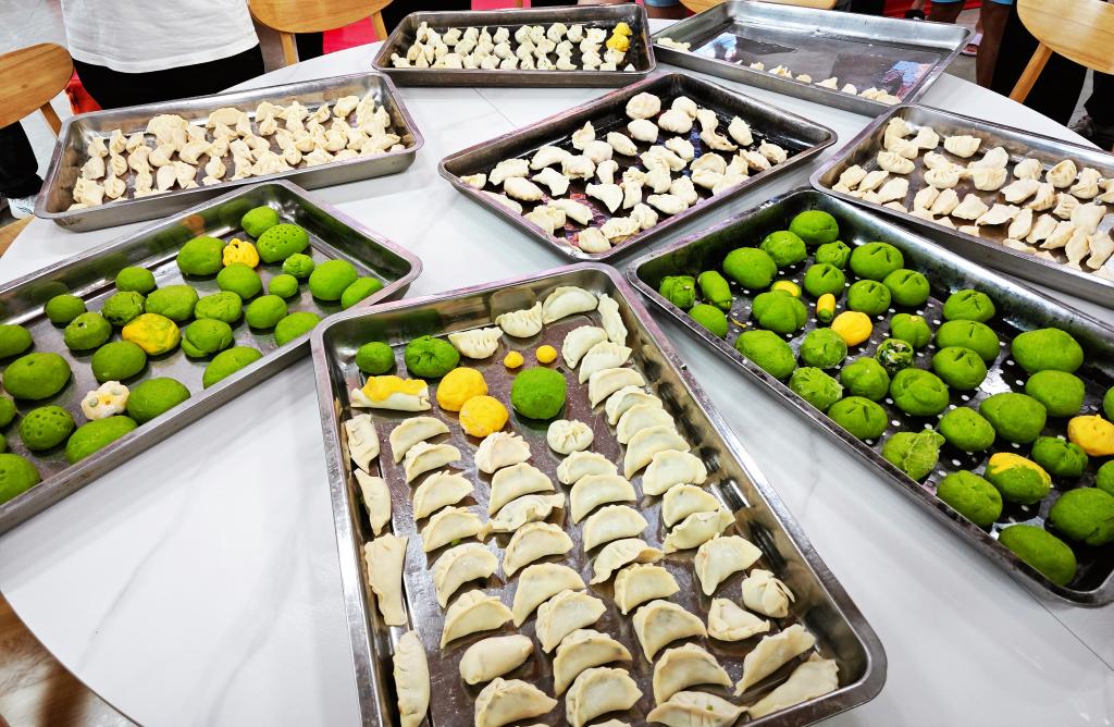 活动伊始,由食堂师傅通过理论与实践相结合的方式,详细讲解面团发酵、馅料调配、包制手法等技巧。在分组实践环节,师生们分工协作,揉面、擀皮、包馅、塑形一气呵成,现场既有“传统派”精心捏制元宝饺、柳叶饺,也有“创意组”尝试玫瑰花饺、小猪馒头等造型,大家在活动中互相交流心得,分享成果,不仅锻炼了动手能力,也增强了团队协作意识。经过2小时的协作,百余只形态各异的水饺和造型独特的馒头新鲜出炉,现场弥漫着浓郁的面香与欢声笑语。
