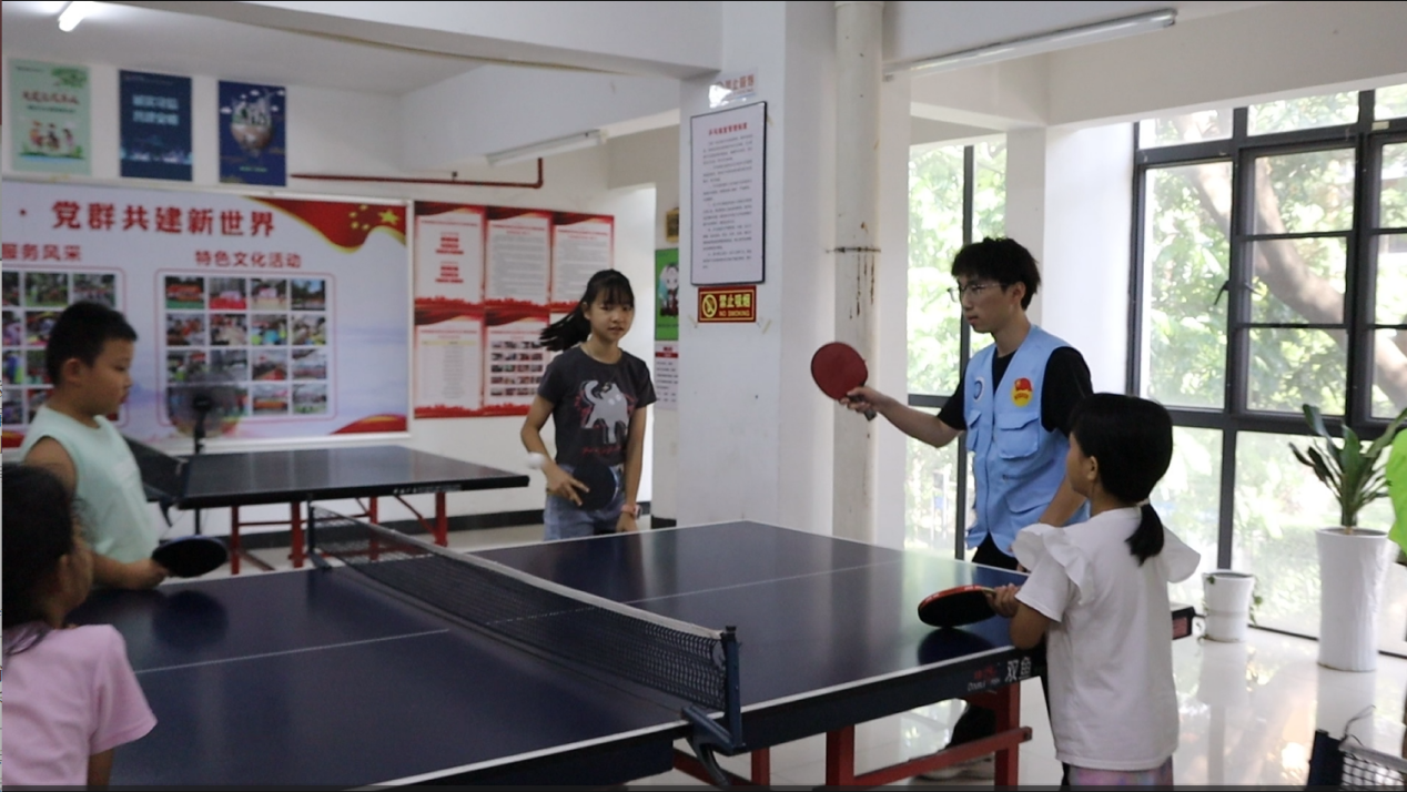 今日的活动如一场甘霖,滋润着孩子们的心田。作业辅导中,实践队师生不仅解疑释惑,更授人以渔,助孩子们养成良好学习习惯;普通话课堂上,趣味故事与互动练习交织,让孩子们在欢笑中领悟共讲普通话的意义,爱上这门通用语言;乒乓教学里,银球飞舞间满是欢乐与成长。这些活动,是知识的传递,是习惯的培养,更是爱的播撒。它让孩子们在社区的温暖怀抱中,既收获了学业上的进步,也感受到了运动的快乐与语言的魅力,更在心中种下了向阳生长、筑梦前行的种子,这正是 “童心启航” 实践队用行动诠释的责任与担当,让 “有爱伴成长,童心向阳筑梦想” 的理念在每一次互动中落地生根,绽放出助力青少年成长的绚丽光彩。