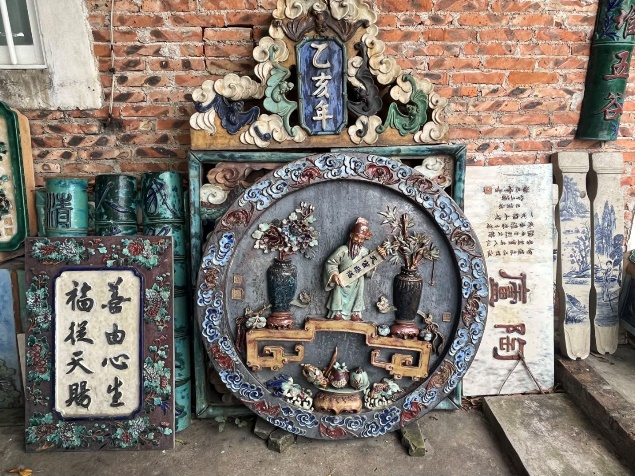 何湛泉先生介绍其展陈在孙中山故居纪念馆内的陶塑瓦脊作品