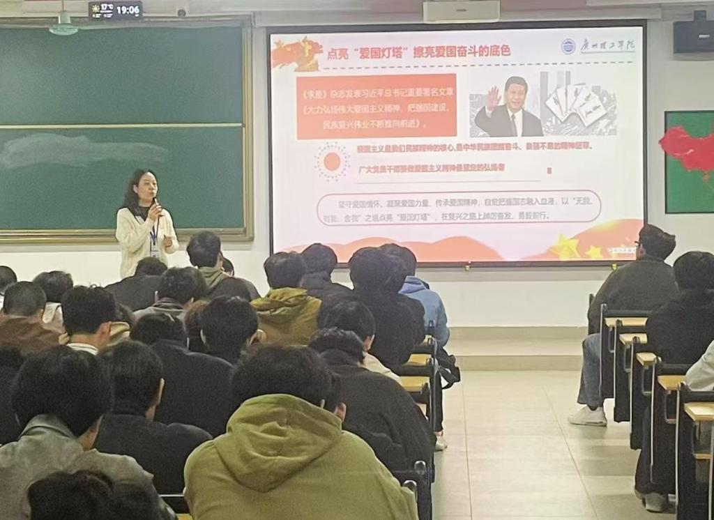 吕在艳书记结合《中华人民共和国爱国主义教育法》立法精神,以五千年中华文明为经纬,系统阐释新时代爱国主义教育内涵。之后,她领学习近平总书记关于弘扬爱国主义精神的重要论述内容,并结合春节宇树机器人亮相春晚的科技案例,激励同学们厚植爱国情怀,提升个人素养,积极投身社会实践,将个人成长与国家发展紧密相连。同学们纷纷表示深受启发,将以此次课程为契机,坚定理想信念,夯实专业基础,勇担时代使命,为推进中华民族伟大复兴贡献青春力量。