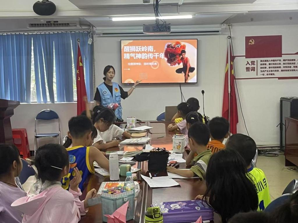 没有隆重的结营仪式,只有孩子们自发围成的小圈。最后一天,志愿者收拾教具时,一个小女孩把折好的纸鹤塞进队员手心:“哥哥,谢谢你教我写毛笔字。”另一个男孩把画好的醒狮贴在门口:“姐姐,明天你们还来吗?”