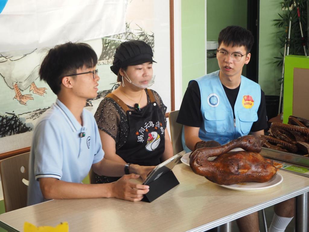实践队抵达揭东,首要任务是与非遗传承人谢奕亮、谢佳娜精准对接,确认实践路线与时间。核心目标明确:深度体验技艺、提升能力、多维推广、助力产业文化融合。队员们参观卤鹅门店,感受其在当地饮食文化中的地位;聆听历史、文化价值及产业挑战;实地考察鹅养殖场与制作空间,系统学习选鹅、卤制等关键环节,被传承人坚守精神深深打动,奠定调研与文化推广基础。