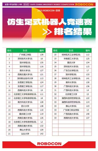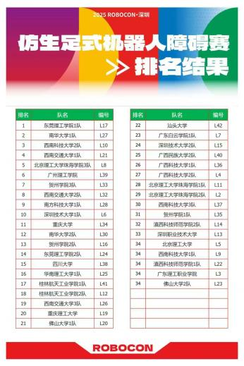 近日,2025年第二十四届全国大学生机器人大赛ROBOCON(深圳赛区)在香港中文大学(深圳)圆满落幕。广州理工学院GLD机器人战队凭借卓越的技术实力与出色的临场发挥,从全国42支强队中脱颖而出,勇夺四项一等奖、两项二等奖,更首度参赛即包揽仿生足式机器人“竞速、越野、障碍”三项一等奖、全能奖以及大疆教育基金仿生足式赛事精英奖,实现我校在该顶级赛事中的历史性跨越!