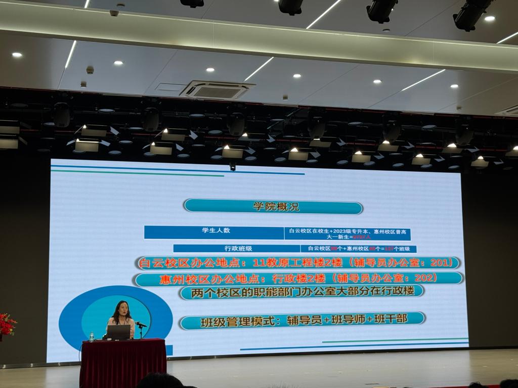9月10日上午,广州理工学院智能制造电气工程学院于白云校区1号报告大厅召开“深耕学风建设,涵养院风底蕴”学风和院风建设教育会。学院党总支书记吕在艳作为主讲人,全体23级专升本新生积极参与。