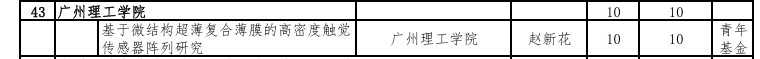 近日,广东省基础与应用基础研究基金委员会正式公布了2024年度广东省基础与应用基础研究基金省市联合基金(粤佛、粤莞、粤惠)拟立项结果。我院赵新花博士申报的区域联合基金-青年基金项目《基于微结构超薄复合薄膜的高密度触觉传感器阵列研究》成功获得立项资助,资助经费10万元。