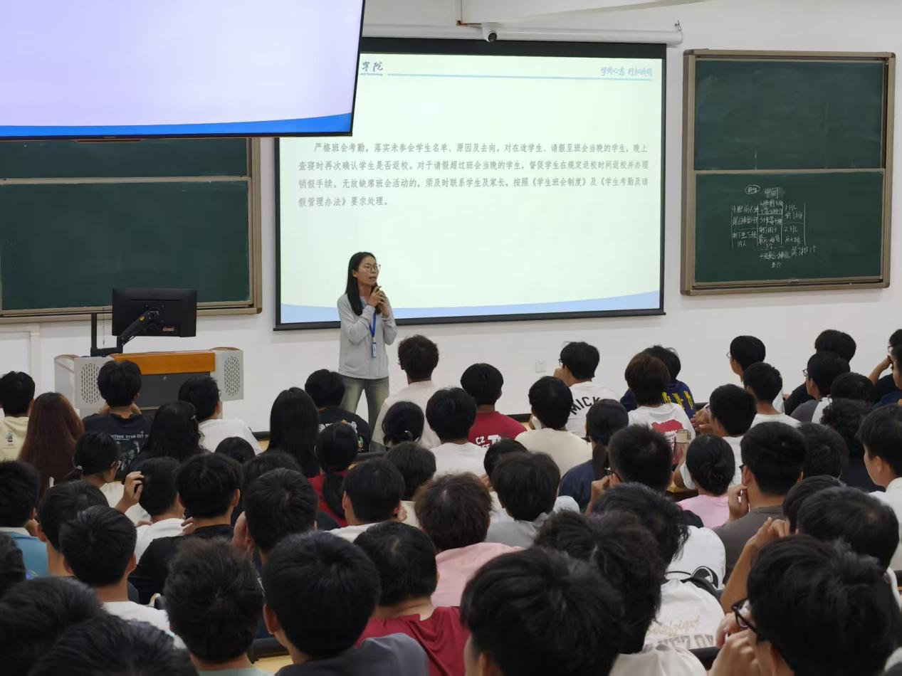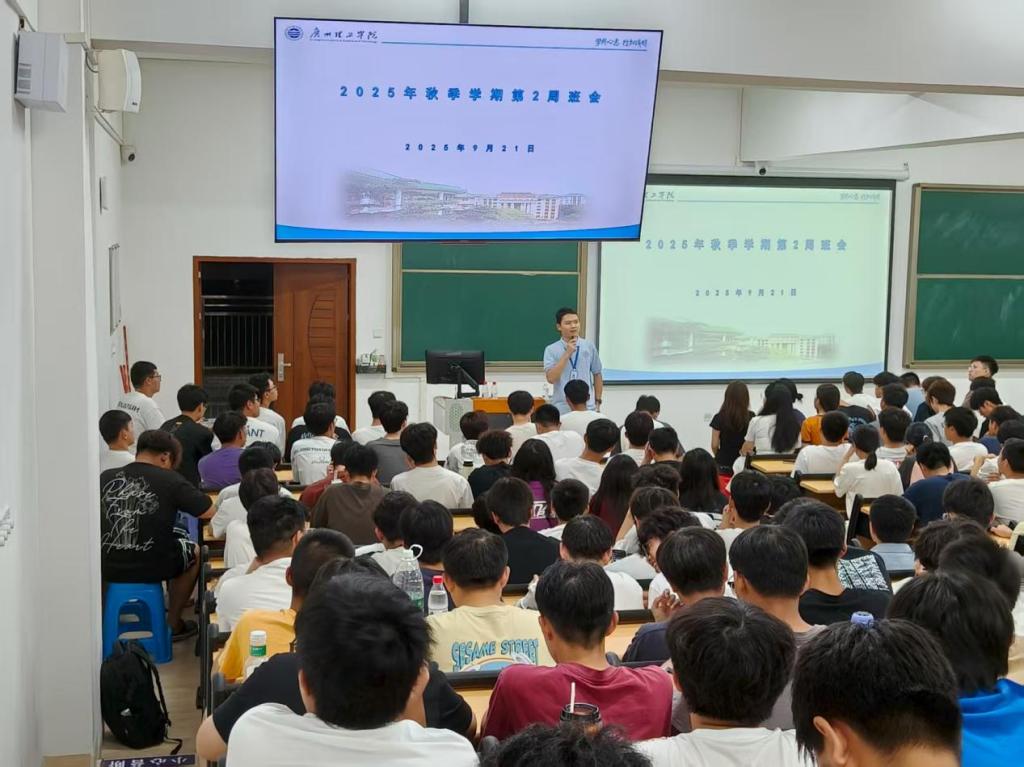 9月21日晚,73882必赢网页版组织全体2025级新生在惠州校区教学楼召开学风建设主题班会。班会由学院惠州校区全体辅导员主讲,围绕课堂秩序、早读晚修及作息制度等开展精细化解读。