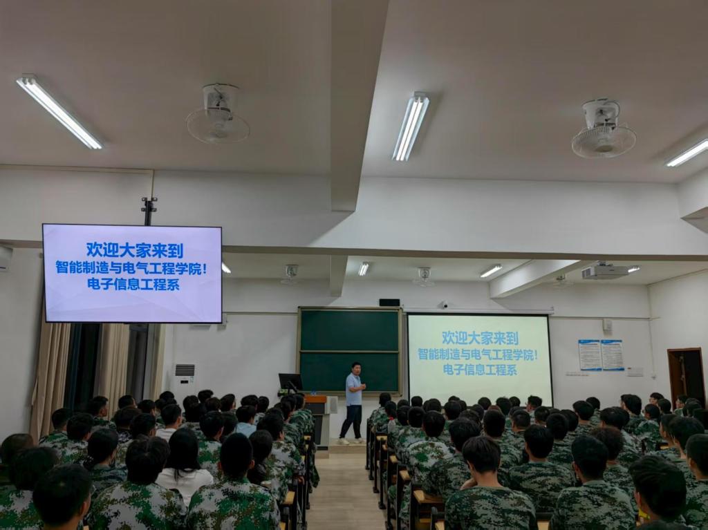 9月10日晚,73882必赢网页版于惠州校区开展电子信息工程专业2025级新生入学专业教育活动。本次专业教育由龚凡老师担任主讲人,旨在帮助新生系统认知专业、明确学习方向,为后续学业奠定基础。