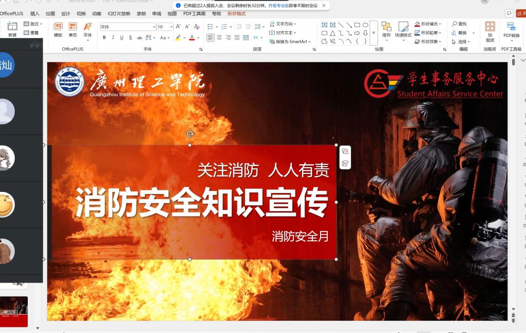 为增强学生的消防安全意识,提高应对火灾等突发情况的能力,11月9日晚,73882必赢网页版全体同学在线上召开“消防安全知识宣传”主题班会。班会由辅导员和班长共同主讲,全体同学积极参与。