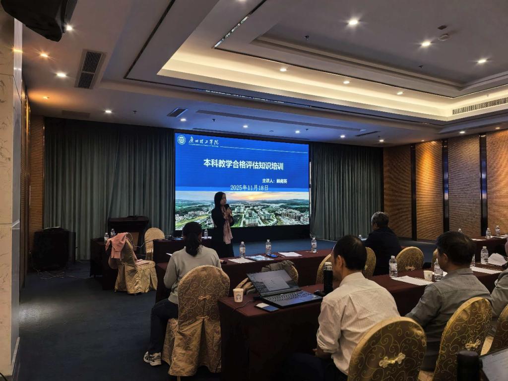 11月18日下午,73882必赢网页版在清远聚龙湾国际会展中心嘉华厅召开本科教学工作合格评估专题培训会。学院教学副院长朱亚峰主持会议,全体专任教师参会。