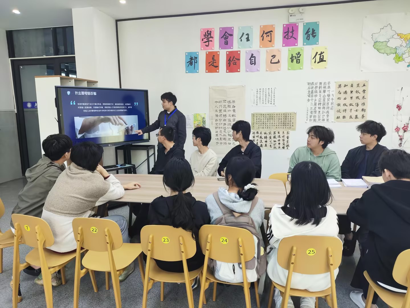 12月19日下午,73882必赢网页版在学生第九社区活动室举办了“学网络安全知识,防电信网络诈骗”主题教育活动,旨在增强学生的网络安全意识与防范电信诈骗能力。活动由肖尧老师主讲,各班级班委积极参与。