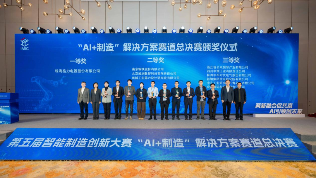 12月26日至27日,第五届智能制造创新大赛“AI+制造”解决方案赛道总决赛在浙江省衢州市成功举办。大赛由国家智能制造专家委员会指导,杭州市余杭区人民政府、衢州市柯城区人民政府、浙江省技术创新服务中心、杭州市经济和信息化局、衢州市经济和信息化局、中国电子技术标准化研究院、智能制造系统解决方案供应商联盟等单位联合主办,搭建了集竞赛比拼、成果展示、技术交流、供需对接与区域协作为一体的高水平平台。历经五届积淀,智能制造创新大赛已累计汇聚近4000项优秀解决方案,成为国内智能制造领域最具专业性、覆盖最广、影响最深远的权威赛事之一。