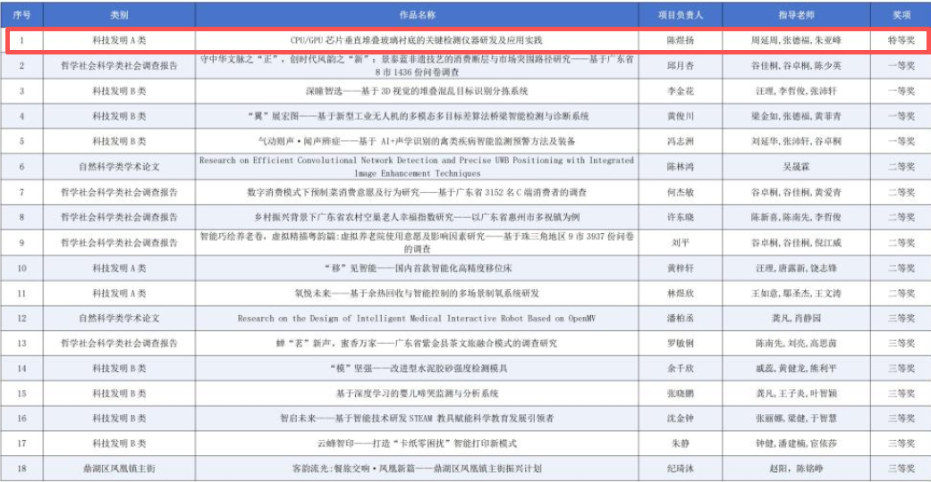 周延周教授指导学生参加挑战杯获得广东省特等奖