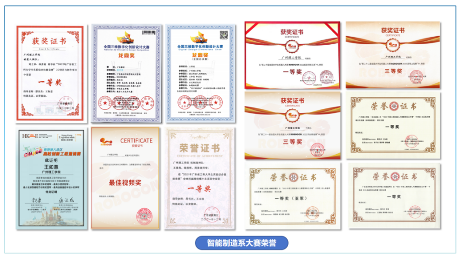 学生竞赛成绩突出,累计获国家级、省级奖项100余项,包括:全国大学生机器人大赛Robocon中斩获大奖,一等奖5项(含冠军1项),全能奖1项,赛事最高荣誉金鹰奖1项;在中国工程机器人大赛暨国际公开赛中获国家级一等奖5项;在"挑战杯"、"互联网+"等其他赛事获国家级35项、省级90余项。
