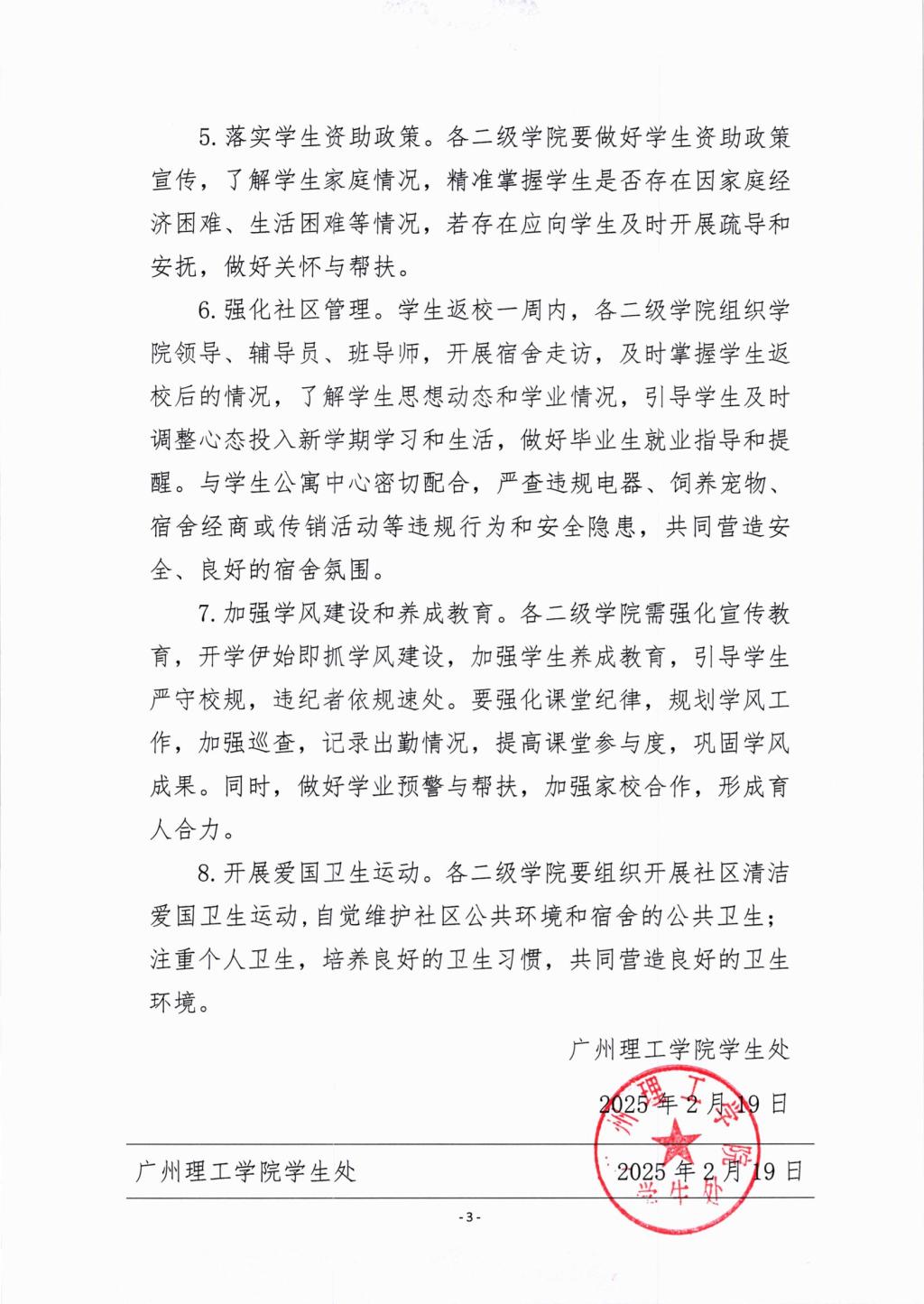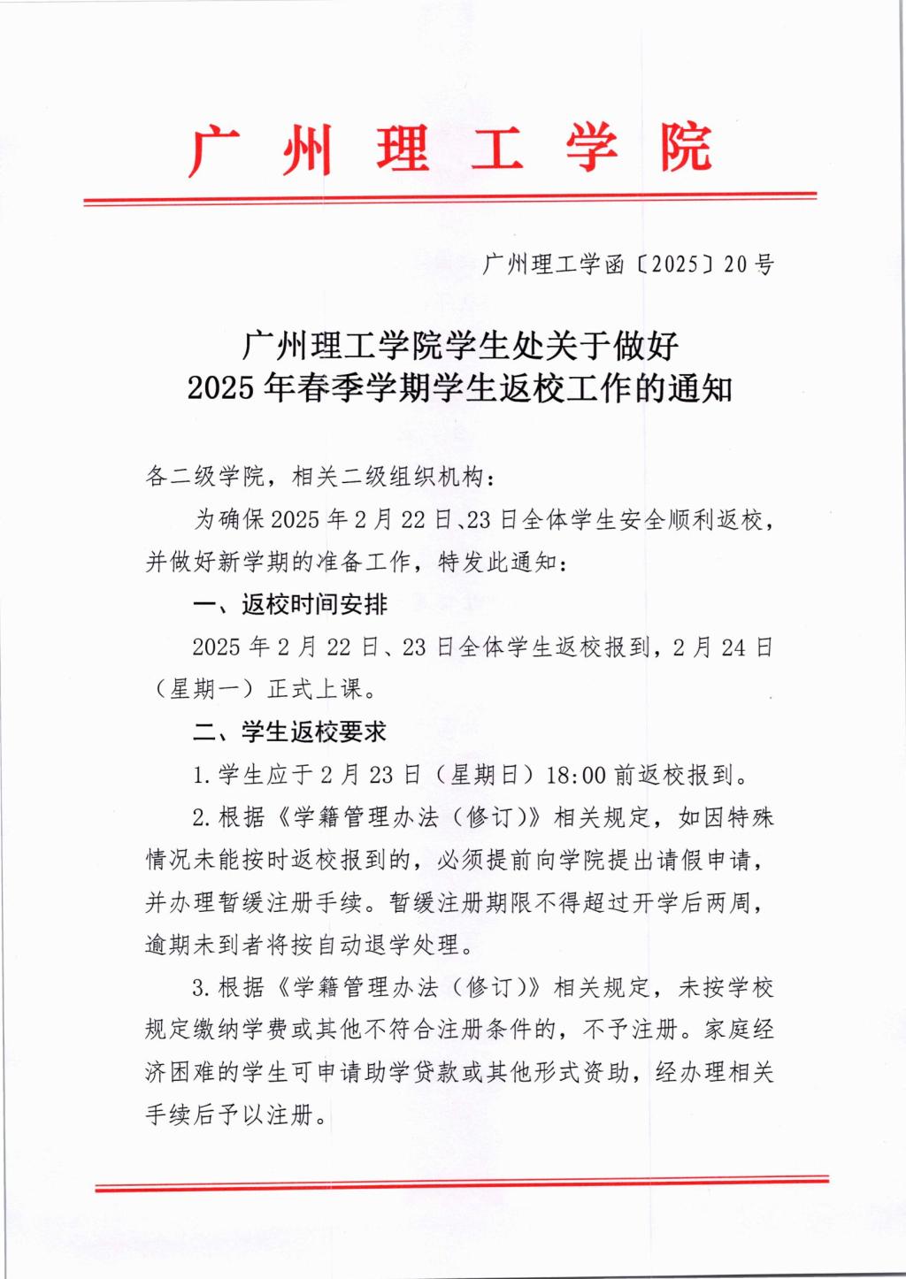 广州理工学院学生处关于做好2025年春季学期学生返校工作的通知