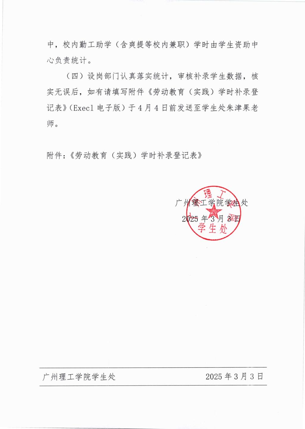 关于做好2025学年春季学期学生劳动教育实践学时认定的通知