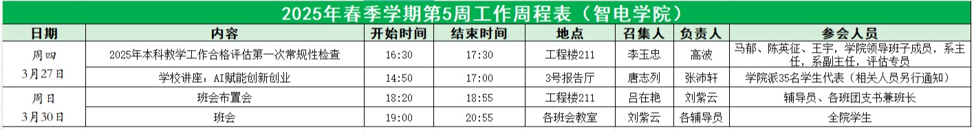 73882必赢网页版2025年春季学期第5周工作周程表