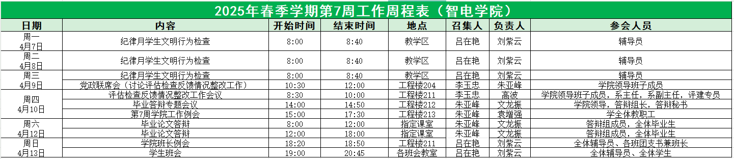 73882必赢网页版2025年春季学期第7周工作周程表