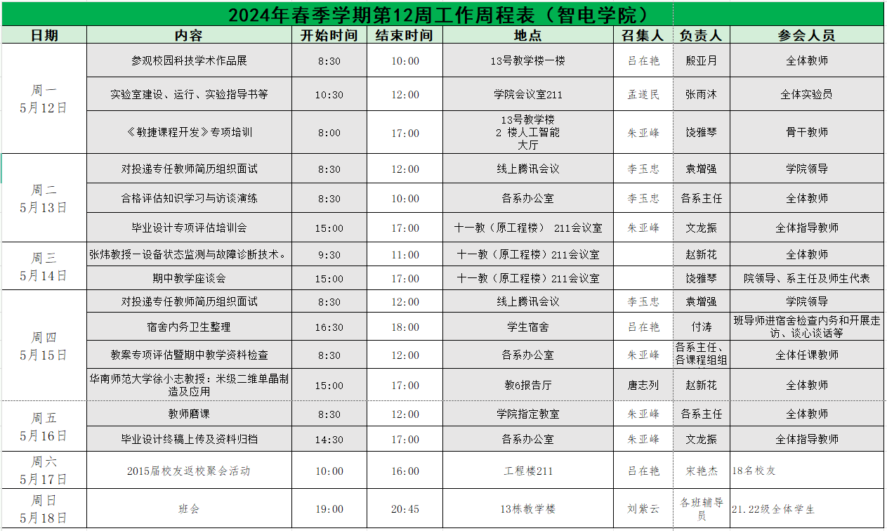 73882必赢网页版2025年春季学期第12周工作周程表