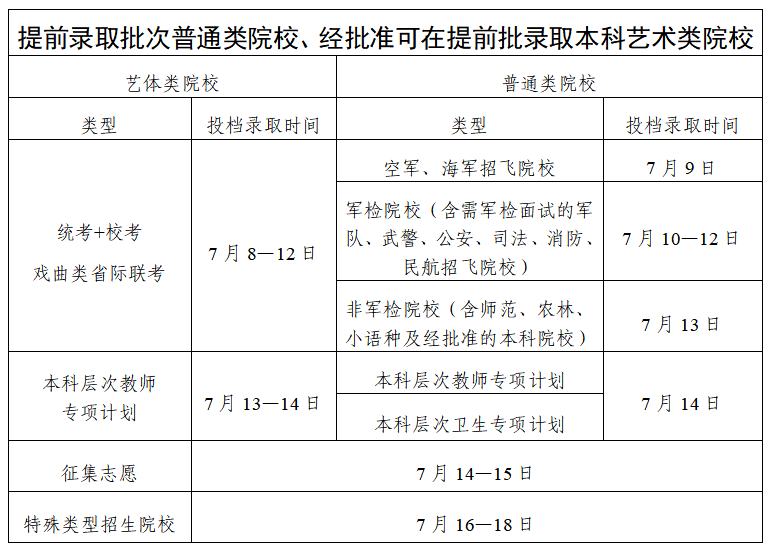 广东省2025年普通高校招生录取工作日程表