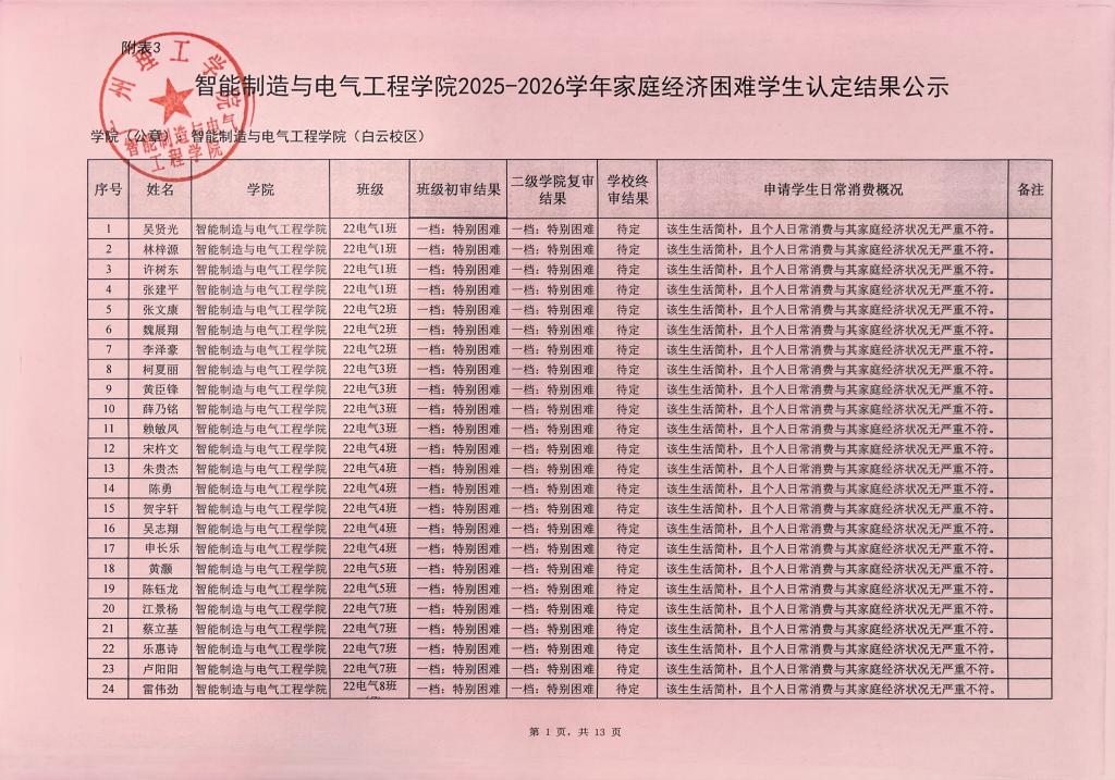 根据《关于做好2025-2026学年家庭经济困难学生认定工作通知》(广州理工学助函〔2025〕10号)等文件精神,我院积极开展家庭经济困难学生的认定工作。经过学生本人自愿提出申请、班级评议小组评议、二级学院核定工作小组初审等程序,现将2025-2026学年秋季学期家庭经济困难学生认定的院级初审结果予以公示。
