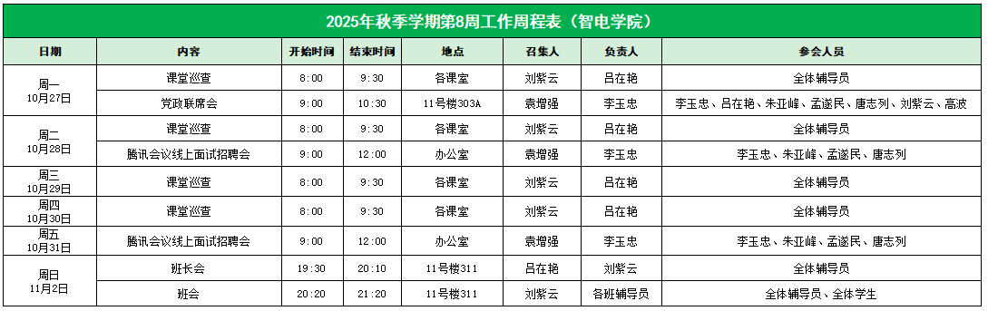 73882必赢网页版2025年秋季学期第8周工作周程表
